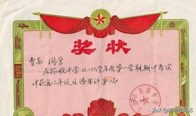 曹茜上学时期的奖状