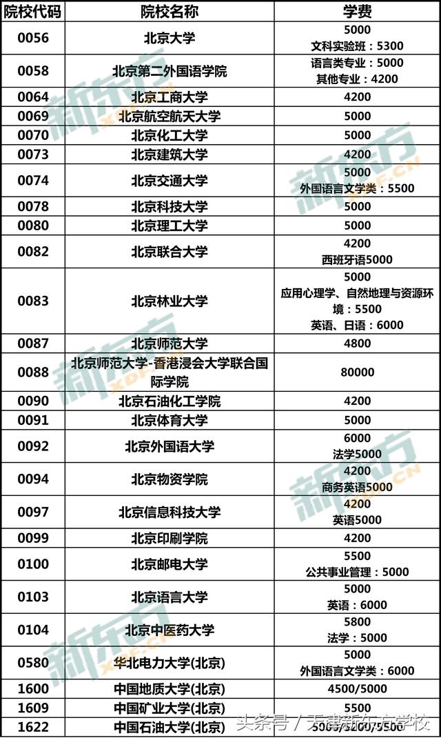 那么学费涨了的只有天津本地么?我们不妨来看看作为天津近邻的北京市的一部分高校学费究竟有多少吧。