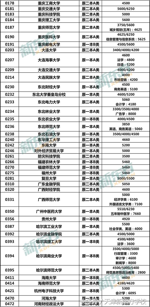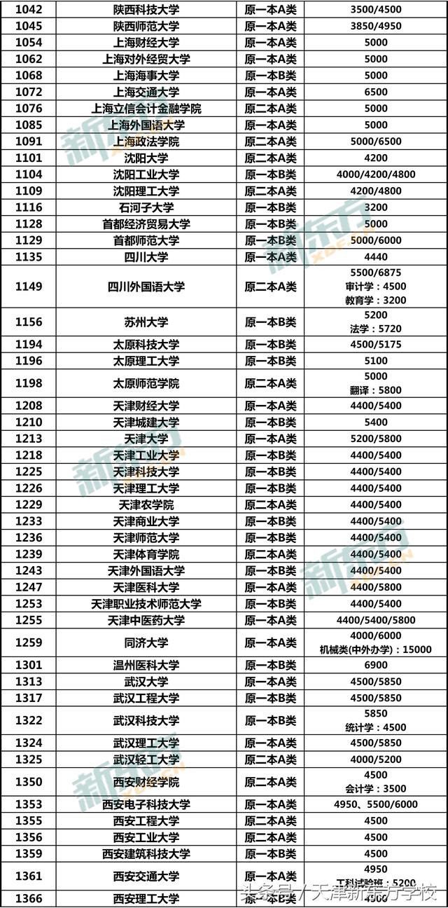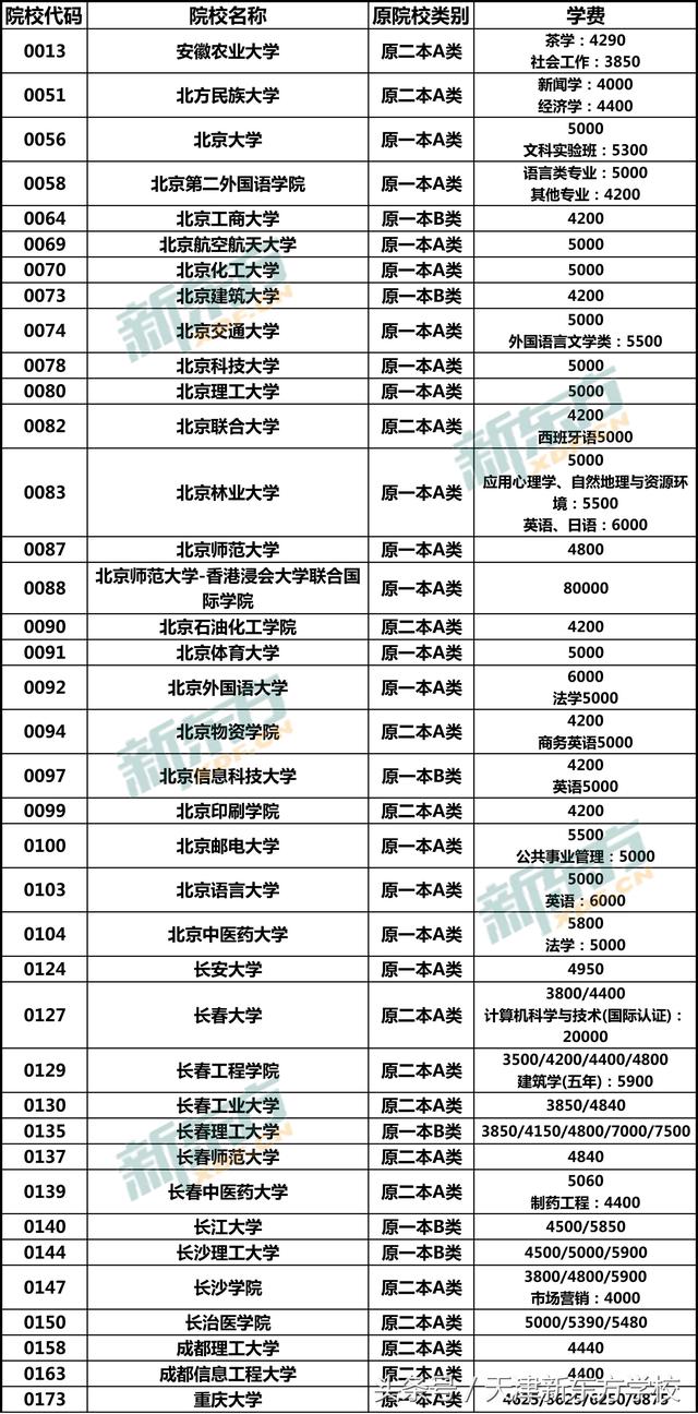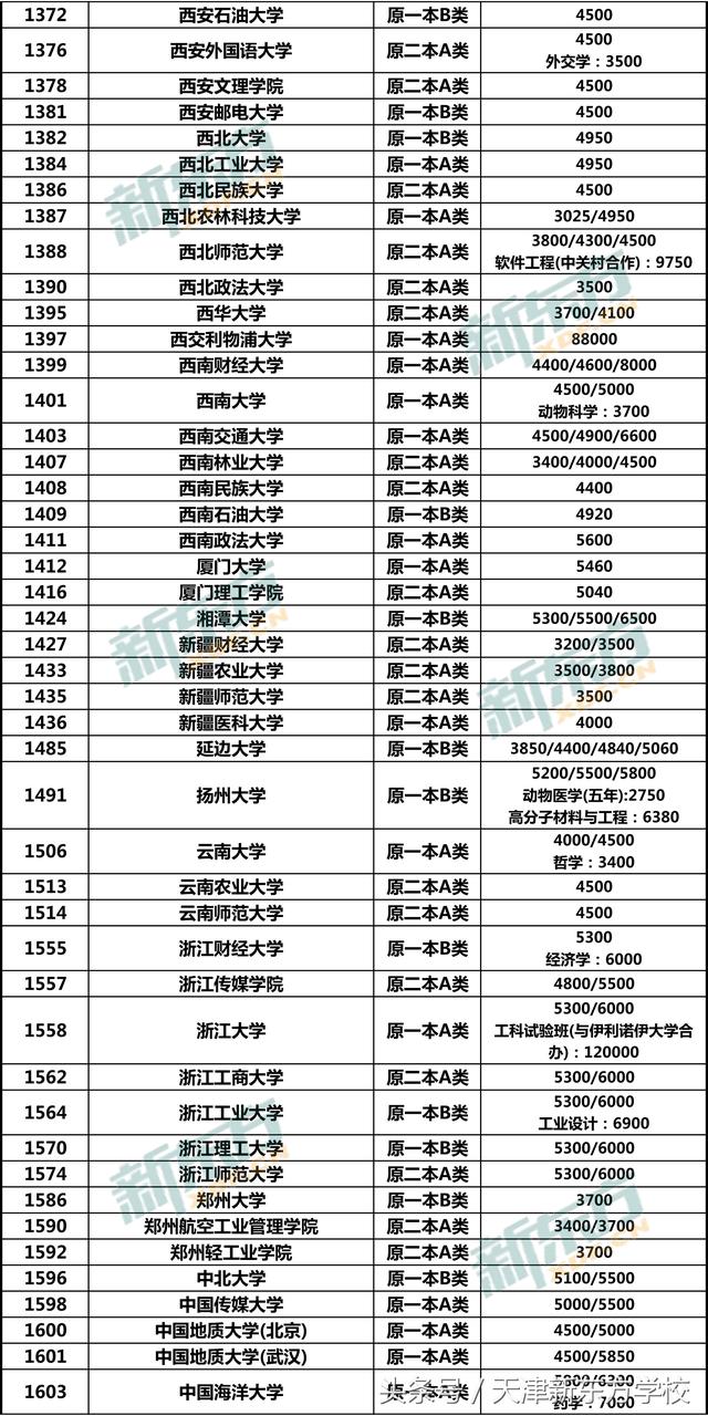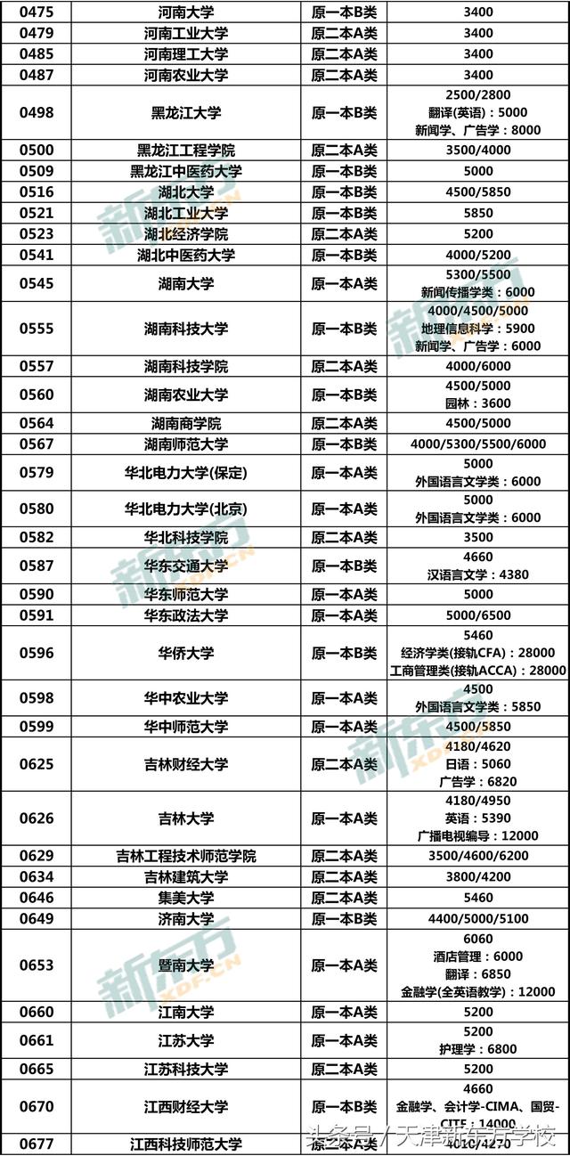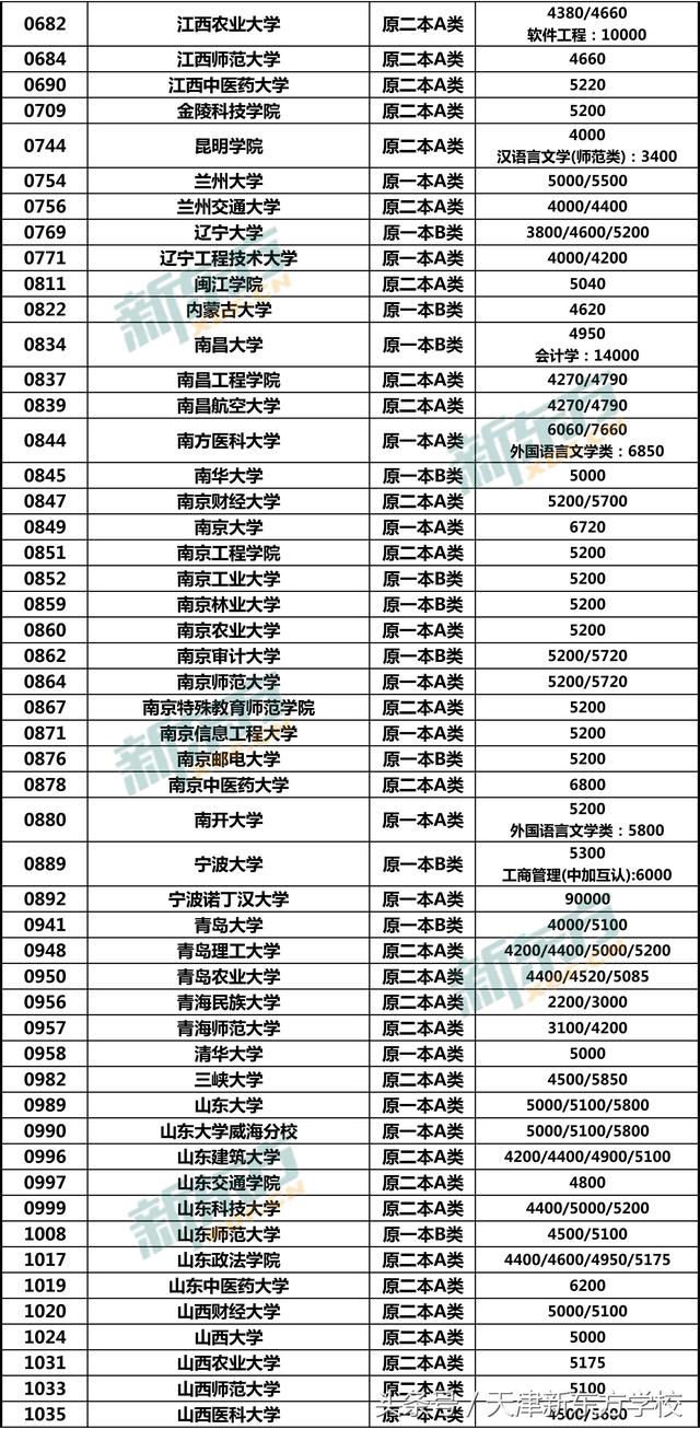 注意:本文所收集数据均以2018年在津招生计划为准,并不表示该院校仅有此类学费种类,例如中国人民(苏州校区)在津仅招生金融学类(中外合作办学),代码1619,学费为60000,故未列出其他学费类型。