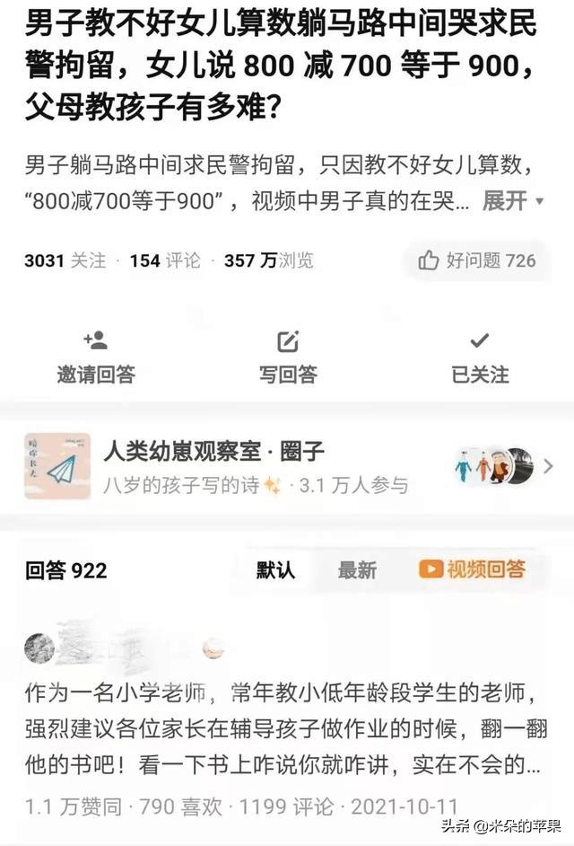 曾经有这么一个爸爸,躺在马路中间哭求民警拘留,原因竟然是女儿做数学题,800减700等于900。