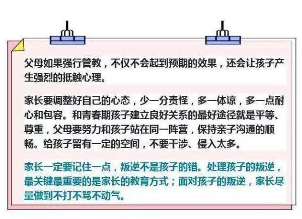 三、父母要充分认认孩子的判逆期:不少父母都认为孩子的判逆期是洪水猛兽,这种想法是错误的,孩子的判逆期是孩子成长和成熟的表现,任何一个父母也不愿意一辈子保护着孩子,孩子只有经过判逆期的顾长,才能迈向一个更高的人生。