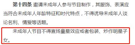 未成年人节目不得宣扬童星效应或者包装、炒作明星子女。