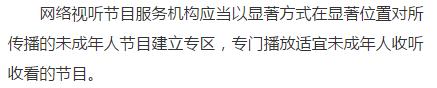 网络视听节目服务机构应当以显著方式在显著位置对所传播的未成年人节目建立专区。