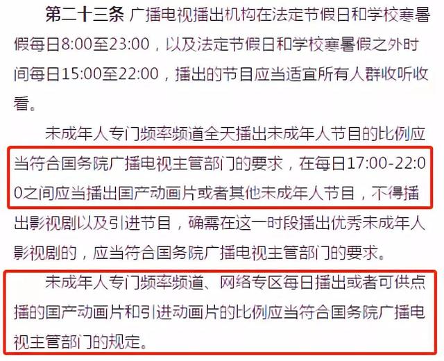 在每日17:00-22:00之间应当播出国产动画片或者其他未成年人节目,不得播出影视剧以及引进节目。