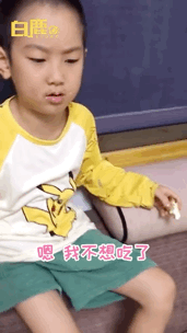 为了跟妈妈赌气,男孩立马连吃了三个,但怎么也吃不下第四个了。