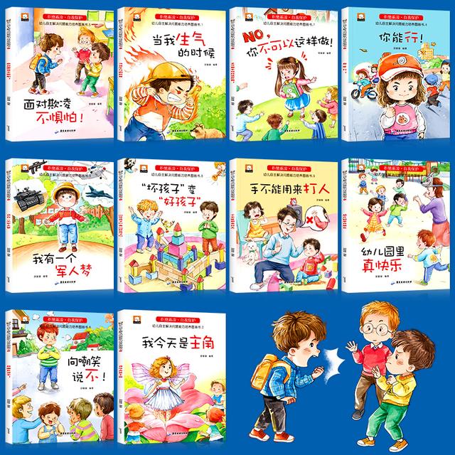 这套《对霸凌说不》自我保护绘本一共有10本,涵盖了常见的学校霸凌事件,比如“被嘲笑”“被造谣”“被推搡”“被抢夺”等等问题。