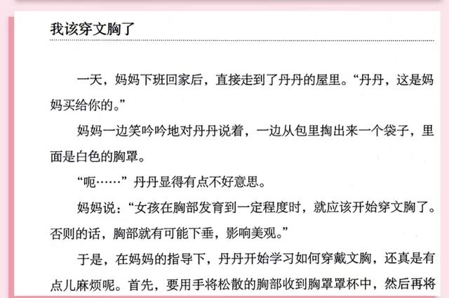 所以,当女儿到了青春期后,父母除了对女儿语言上的引导外,还给女儿提供一些关于青春期女孩的“私房书”,让女儿从书中了解青春期女孩成长过程中的必须懂的道理,效果反而更好。